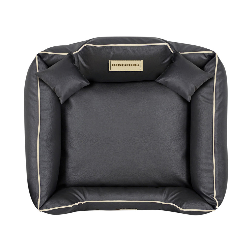 Pat pentru caini KingDog, din piele ecologica, 75 x 65 cm, negru - alb