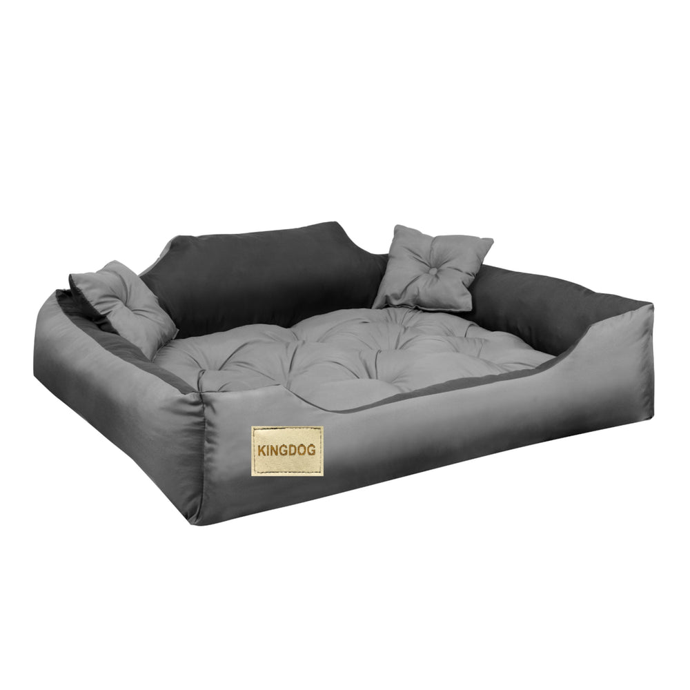 Patul pentru câini și pisici din microfibră durabilă și impermeabilă este prevăzut cu două perne mici.