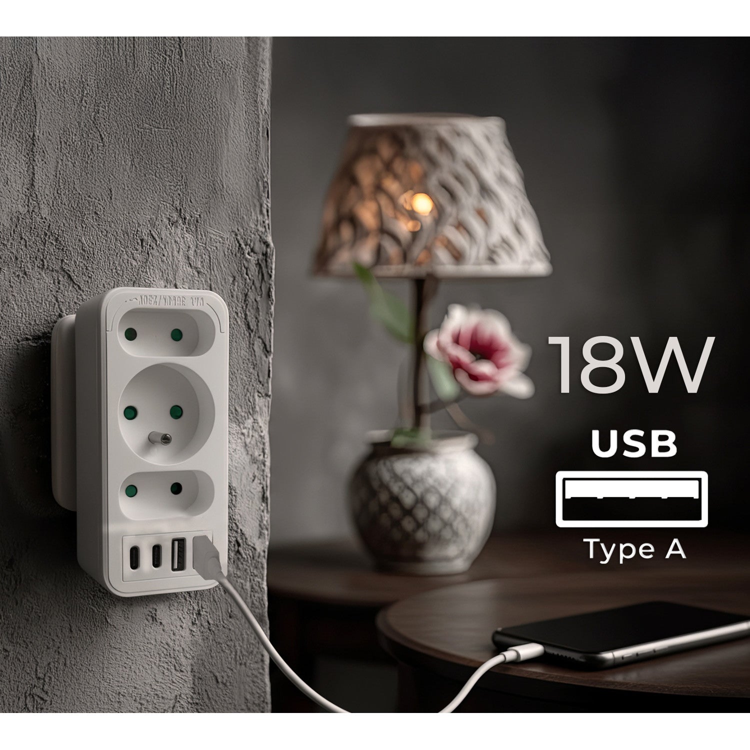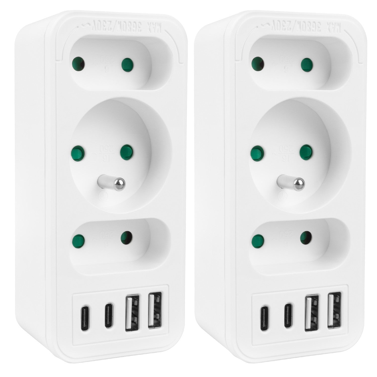 2x splitter 3 prize 2x USB-A 2x USB-C alb
