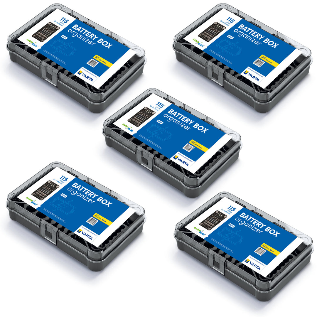 Organizator de baterii GreenBlue, capac transparent, 115 spații, Varta Box GB189, 5 bucăți