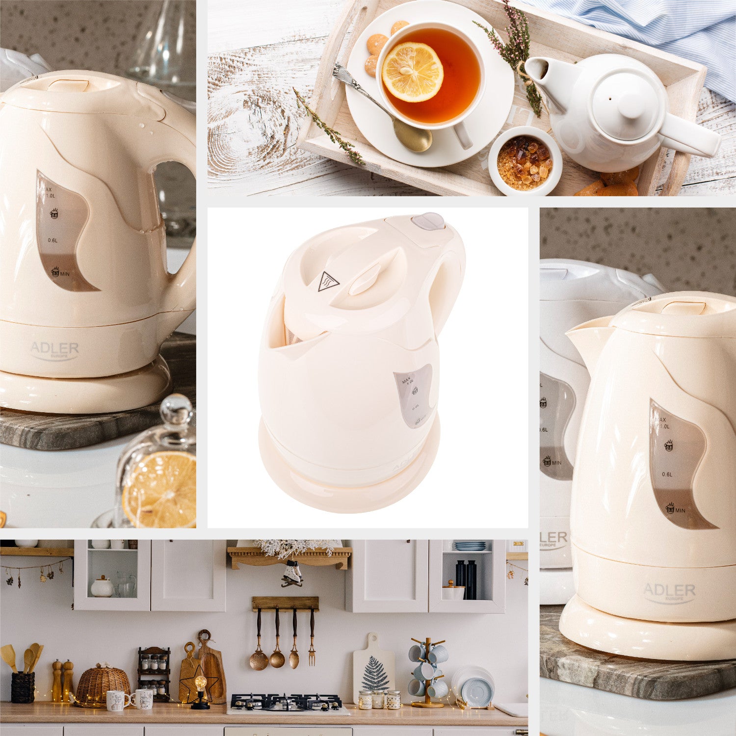 Ceainic fără fir Adler, 850W, clasic de 1L, bej, AD 08 b