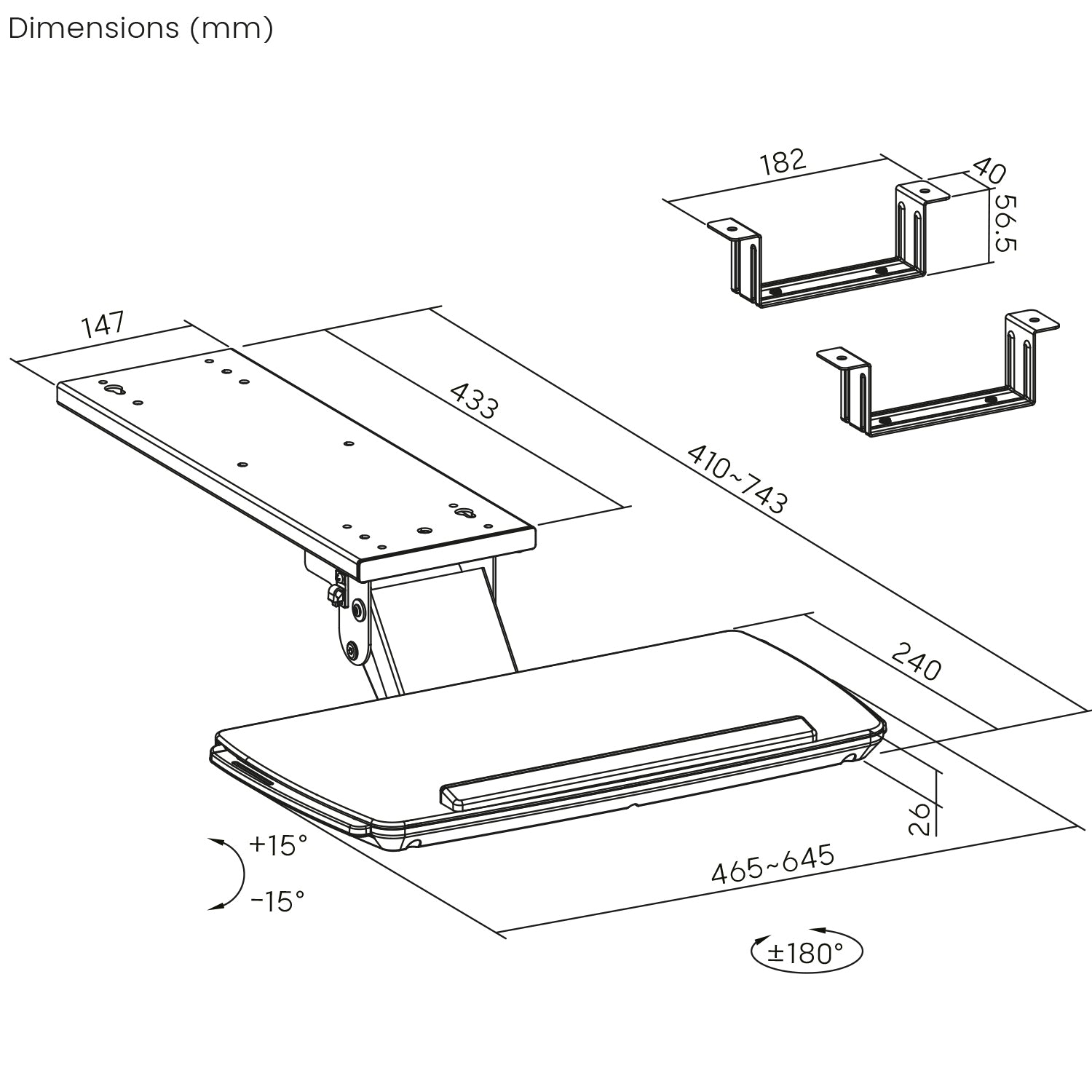 Suport tastatură Maclean sub birou, reglabil, max. 5kg, negru, MC-156 B