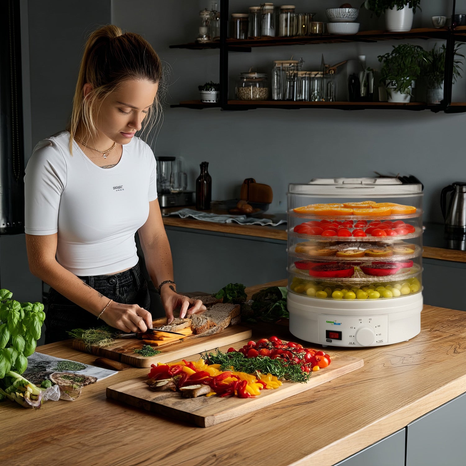 Cu ajutorul uscătorului GreenBlue GB190 puteți pregăti o cantitate mare de legume, fructe și ciuperci uscate, care sunt perfecte pentru a face supe gustoase sau compoturi sănătoase.