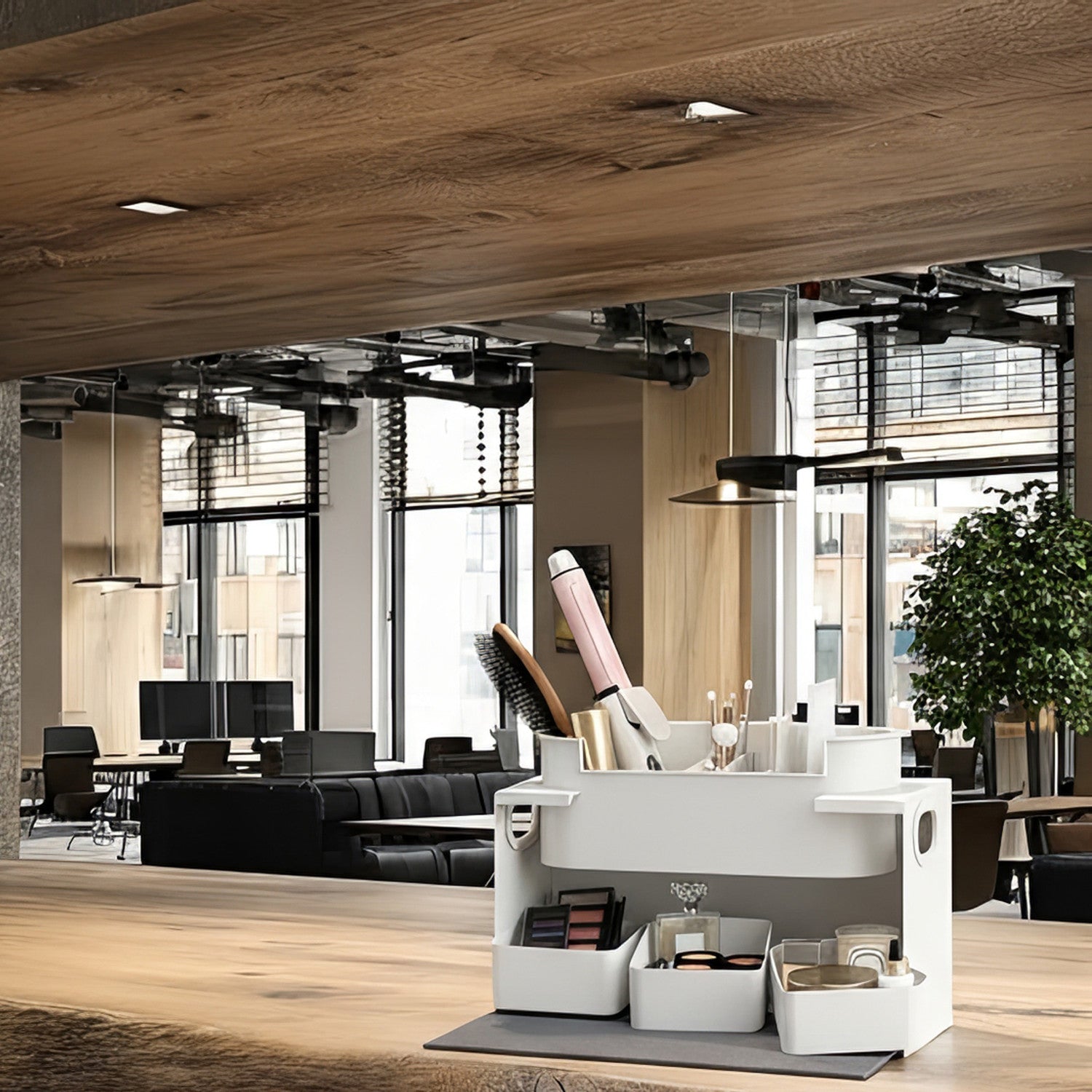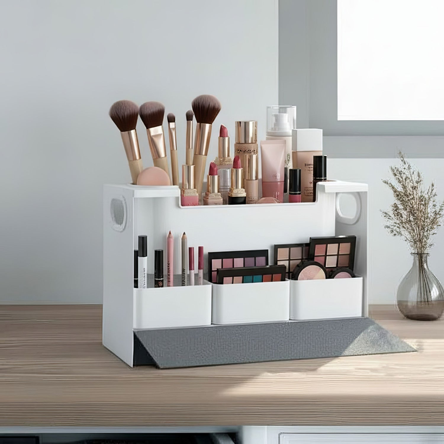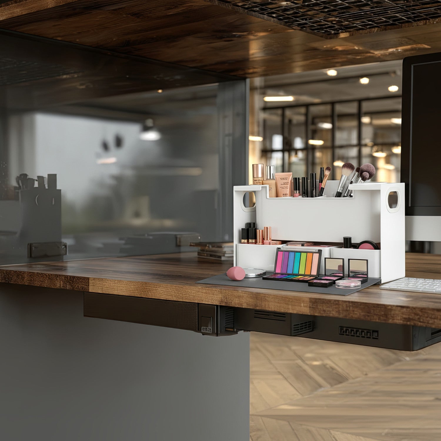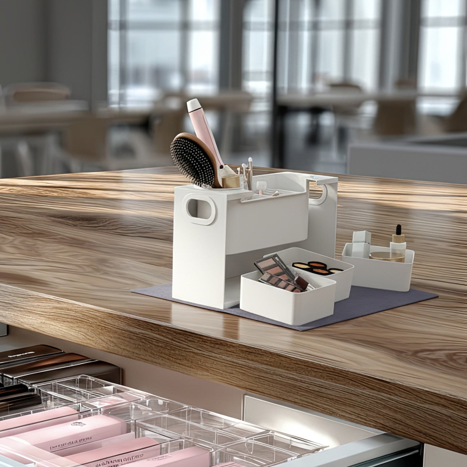 - Stochează diferite tipuri de produse cosmetice și accesorii de machiaj într-un singur loc