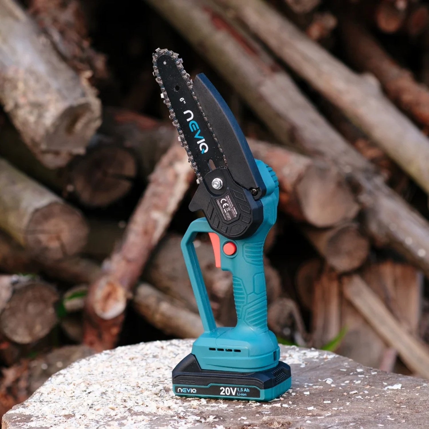 Ferăstrău cu lanț fără fir NEVIQ, bară 6'', 200W, baterie Li-ion 1.5 Ah, L04302