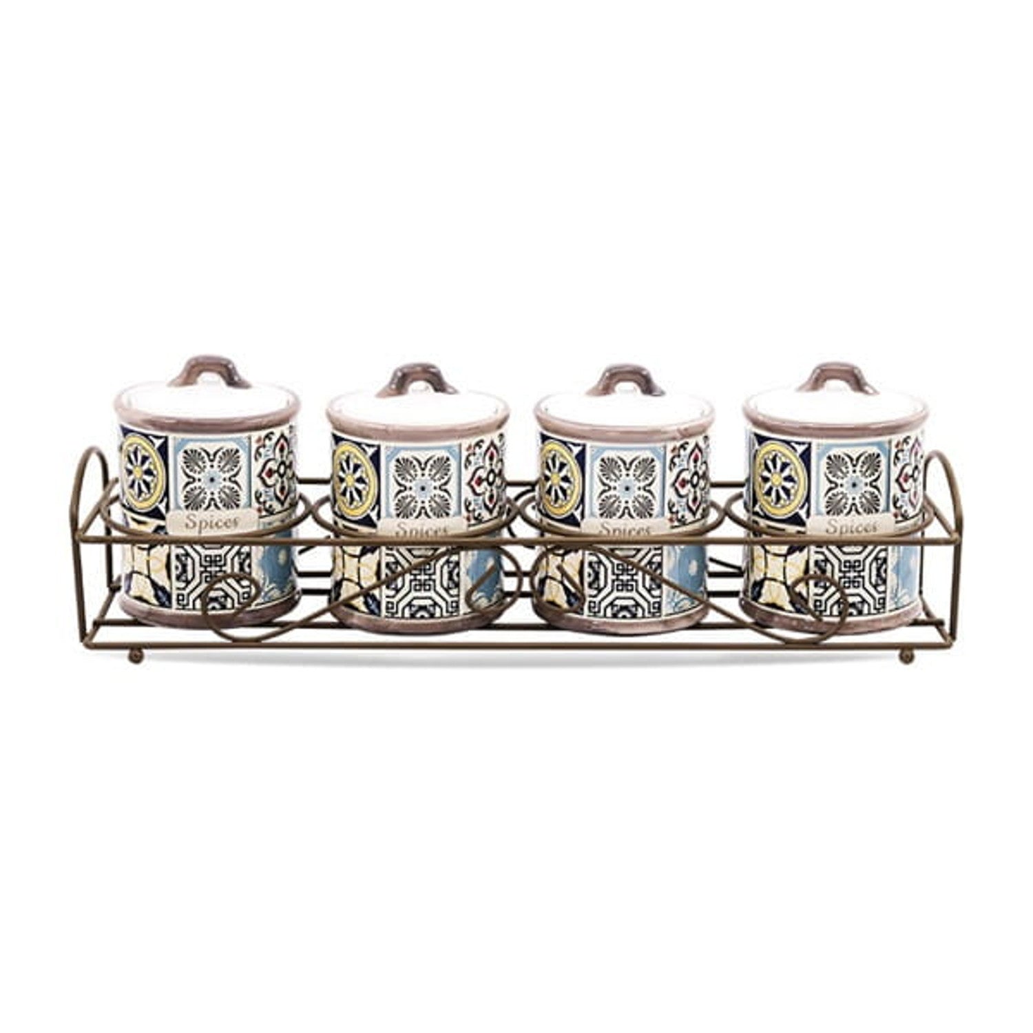 Holiday in Porto Maestro set de recipiente ceramice, 5 piese, capacitate 200ml, ideal pentru condimente, cu suport metalic, MR-20005-04CS