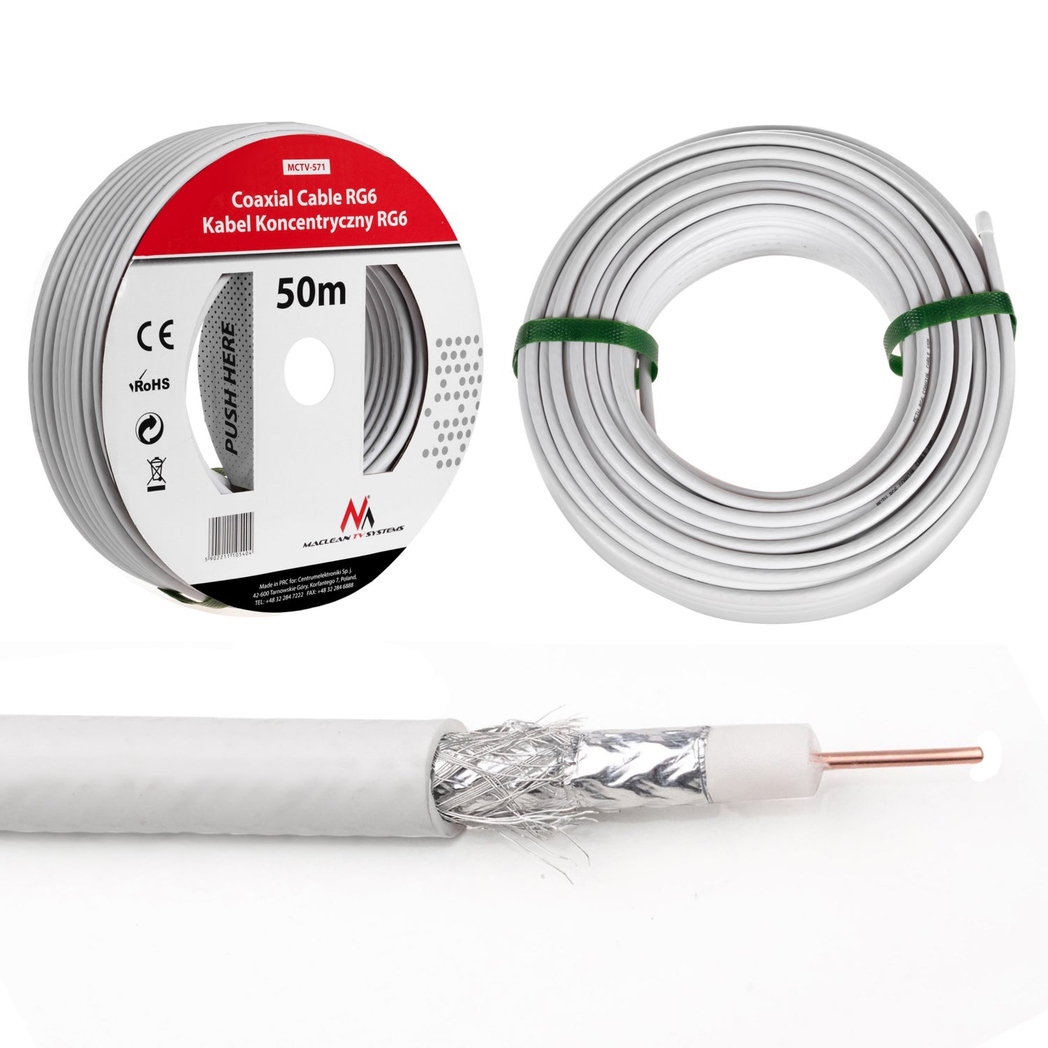 50m - RG6-U CCS Un miez de cablu gros de 1,0 mm cu ecranare dublă garantează parametrii electrici foarte ridicați și o atenuare a semnalului extrem de scăzută.
