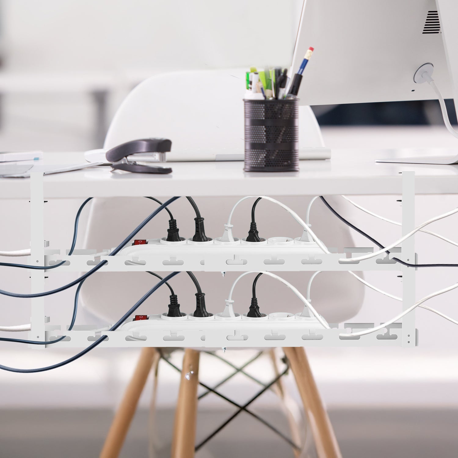 Maclean organizator de cabluri sub birou, încărcare max. 5kg, max. 728mm, 2 nivele, alb, MC-102 W