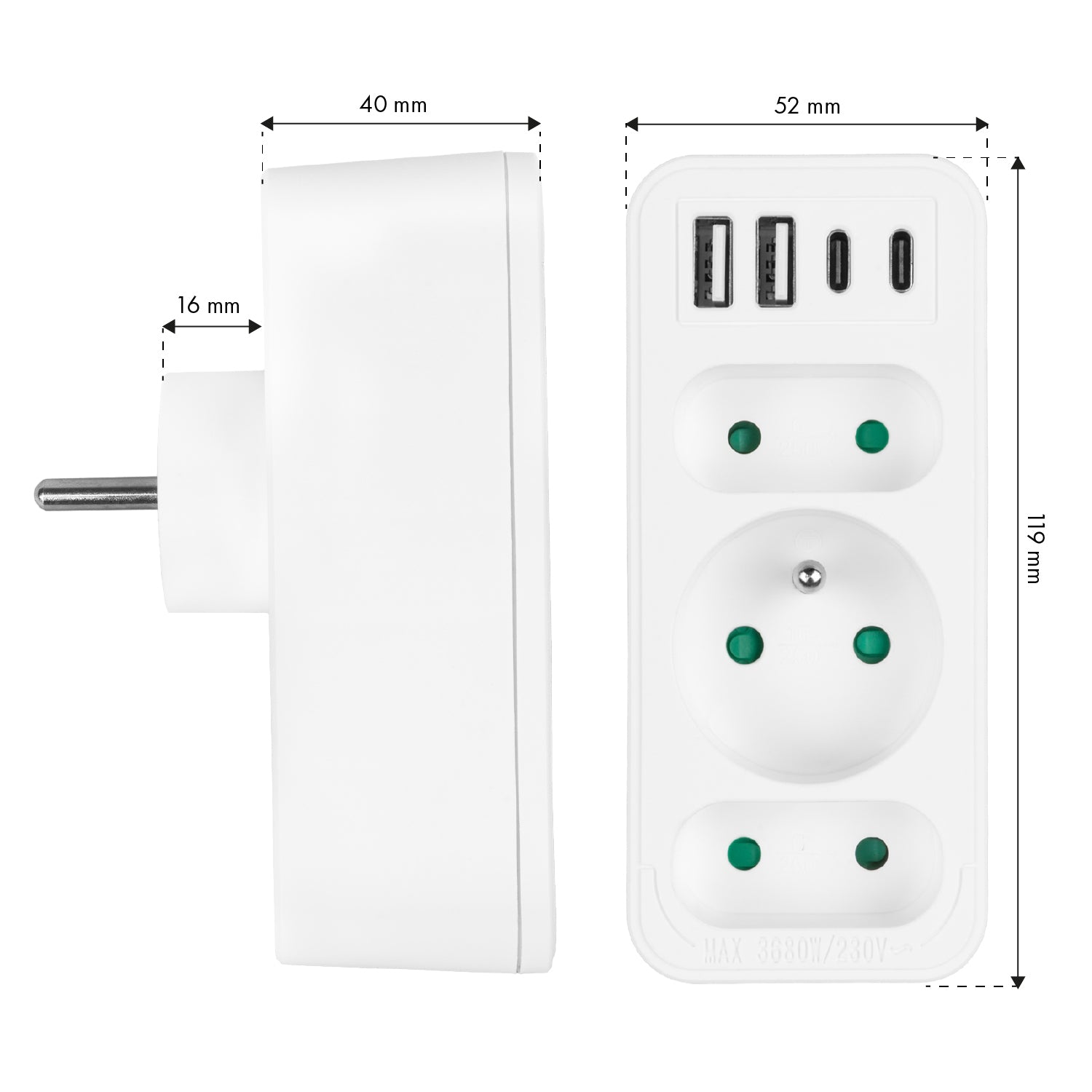 - Splitter cu 3 prize, 2xUSB A, 2xUSB C MCE248 F/W