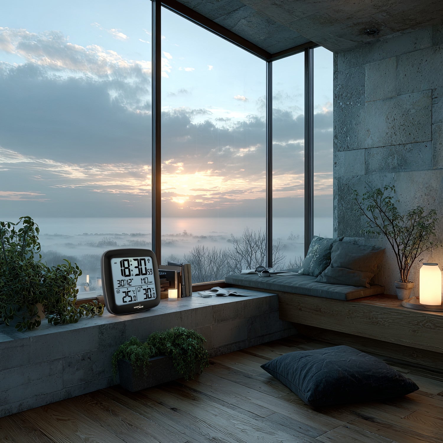 Stația se distinge prin afișajul mare, ușor de citit, pe care toate informațiile sunt prezentate clar. Datele sunt vizibile chiar și de la o distanță mai mare, facilitând citirile rapide. Dispozitivul are, de asemenea, un ceas cu sistem DCF, care sincronizează automat ora cu semnalul radio, asigurându-se că ora este întotdeauna afișată cu precizie. Acest lucru permite stației meteo să acționeze ca un ceas practic și elegant în casa sau biroul dvs.