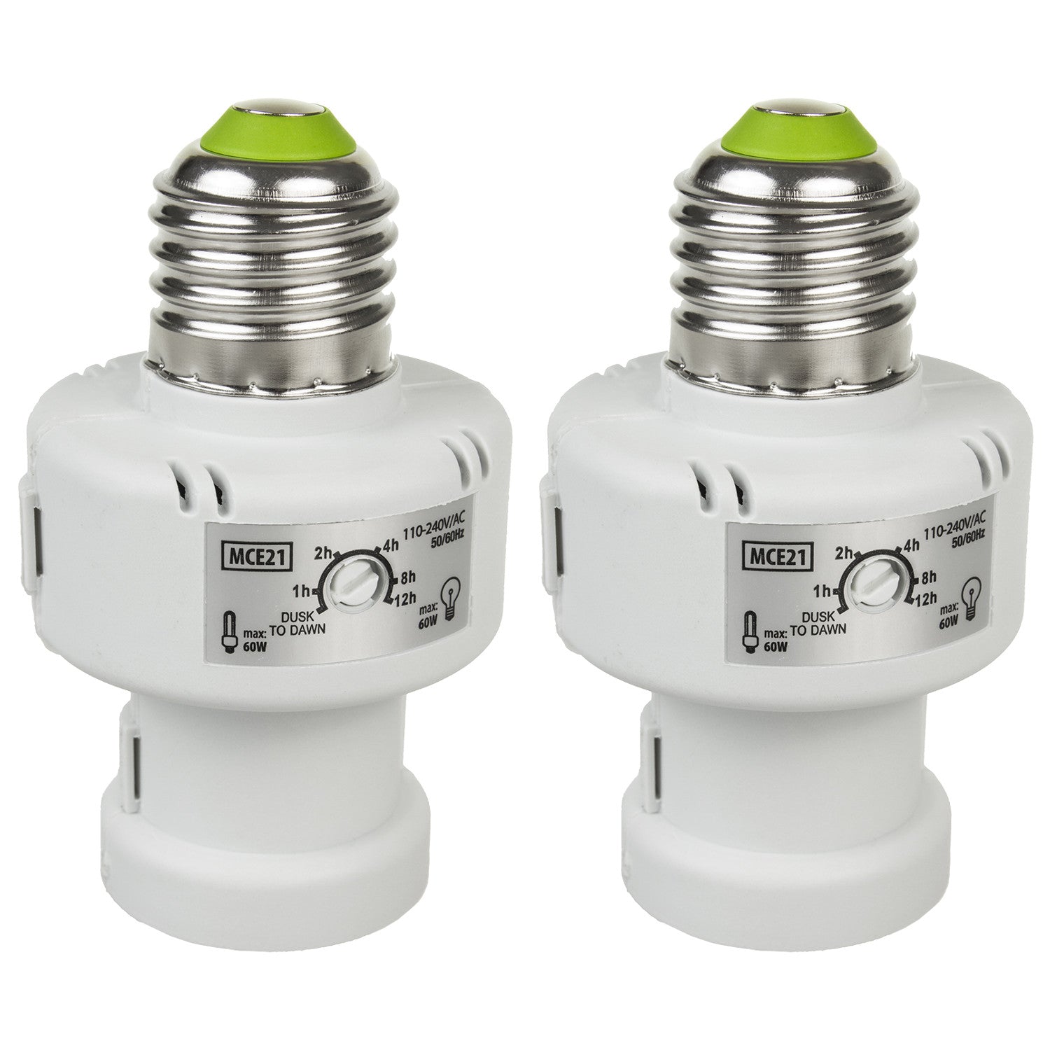 Suport de bec Maclean, E27, max. 100W, cu senzor de amurg, temporizator, alb, MCE21W, 2 bucăți