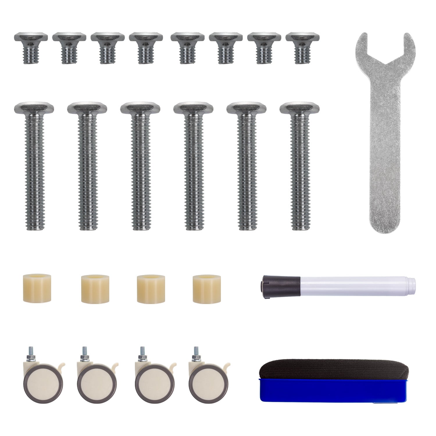 Whiteboard-ul este echipat cu un raft pe care pot fi depozitate convenabil accesoriile mici, inclusiv marker-ul și buretele incluse. În acest fel, toate elementele necesare sunt întotdeauna la îndemână, ceea ce sporește confortul de lucru.