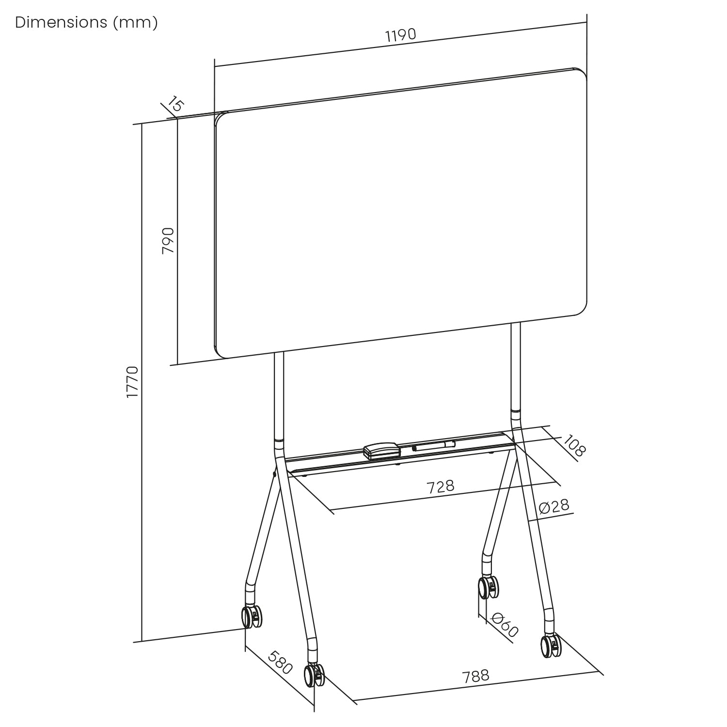 Tablă mobilă orizontală cu ștergere uscată 119x79cm