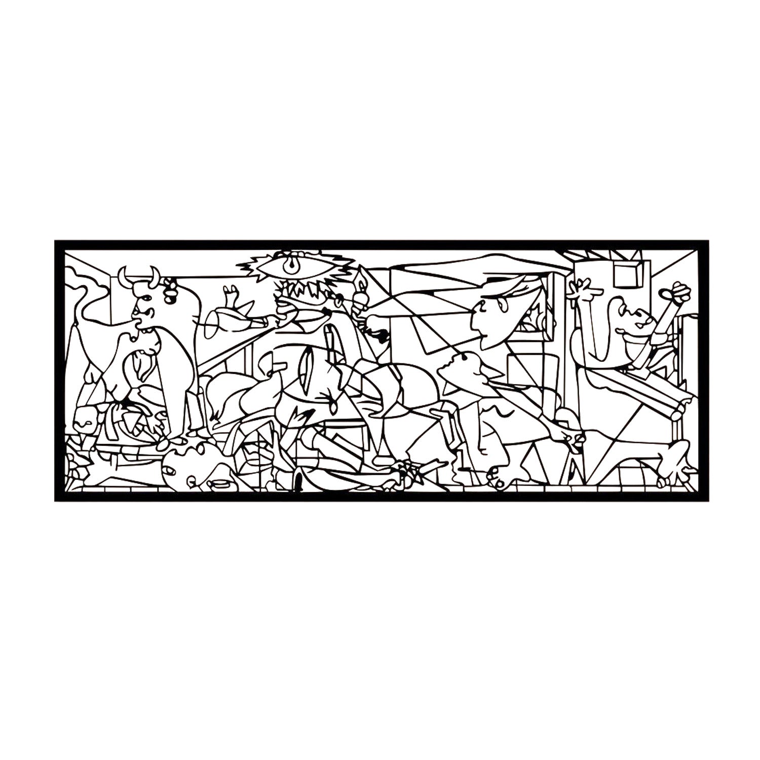 Tablou openwork, decorațiuni de perete 3D, tablou 3D "Guernica de Pablo Picasso" 67x27cm Negru