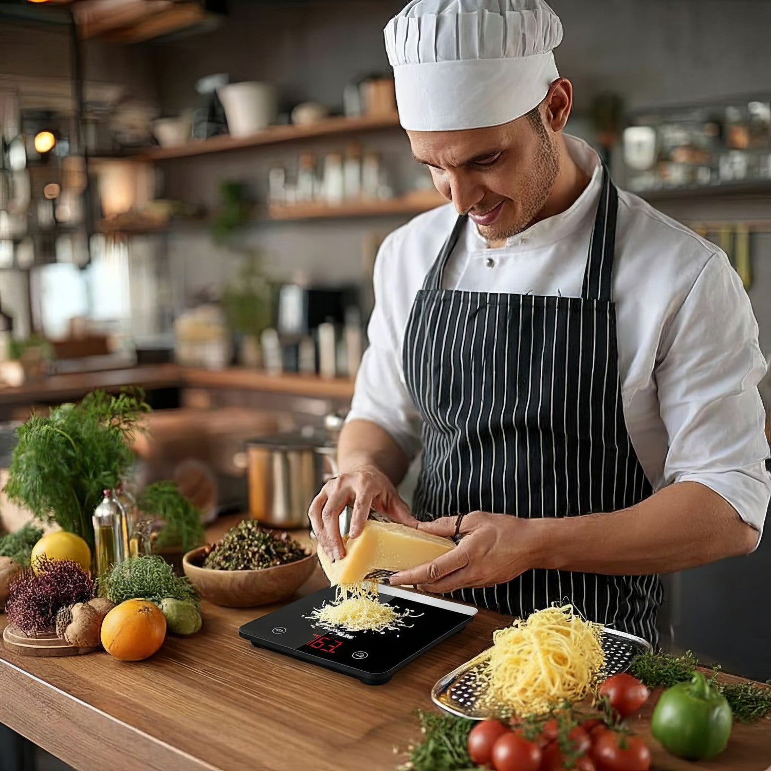 Cantar de bucatarie modern, de inalta calitate, cu un design compact. Extrem de util in prepararea mancarurilor care necesita proportii strict definite de produse. Permite cantarirea precisa chiar si a unor cantitati mici de produse. Datorita functiei tara, puteti cantari si produse in containere. Este suficient sa taram greutatea recipientului in prealabil. Suprafata din sticla este usor de curatat, iar dimensiunile compacte faciliteaza depozitarea. Cantarul are picioare antiderapante pentru o functionare stabila.