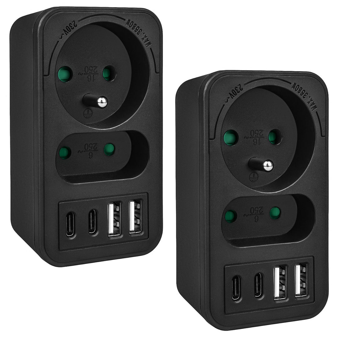 Soclu curent Maclean x2 + 4xUSB, splitter cu 2 socluri, 2xUSB A, 2xUSB C PD 20W, 1x16A + 1x6A, MCE249 F/W, 2 bucăți