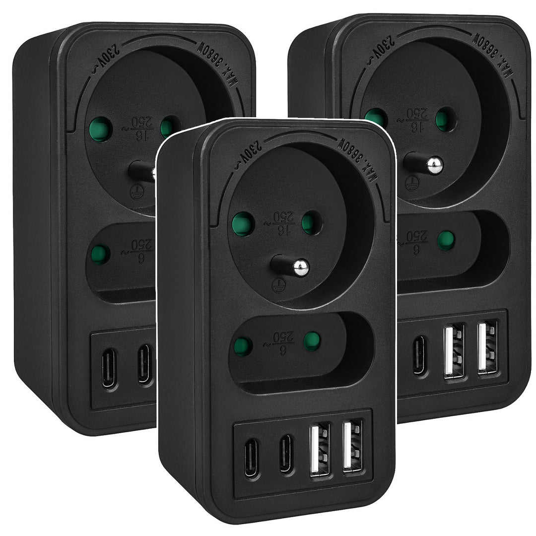 Soclu curent Maclean x2 + 4xUSB, splitter cu 2 socluri, 2xUSB A, 2xUSB C PD 20W, 1x16A + 1x6A, MCE249 F/B, 3 bucăți