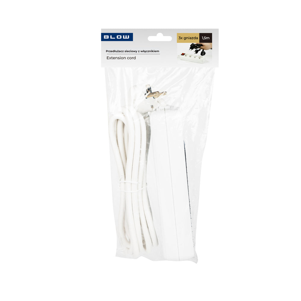 Cablu prelungitor cu 3 prize cu întrerupător de 1,5 m alb PR-370wsp 3x1,5 mm Blow