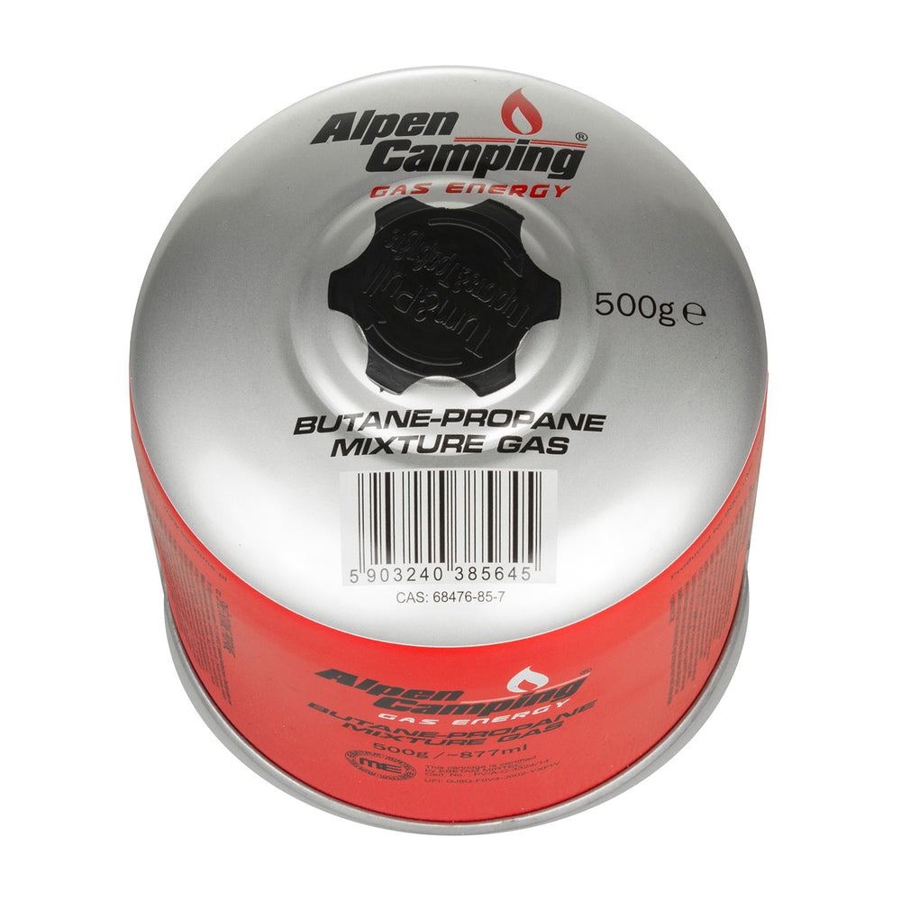 2 x 500 g cartuș de gaz Alpen Camping de 500 g. Certificat: Pi 0437, conform EN417, propan-butan, interval -10°c până la + 40°c, supapă 7/16" IK008.