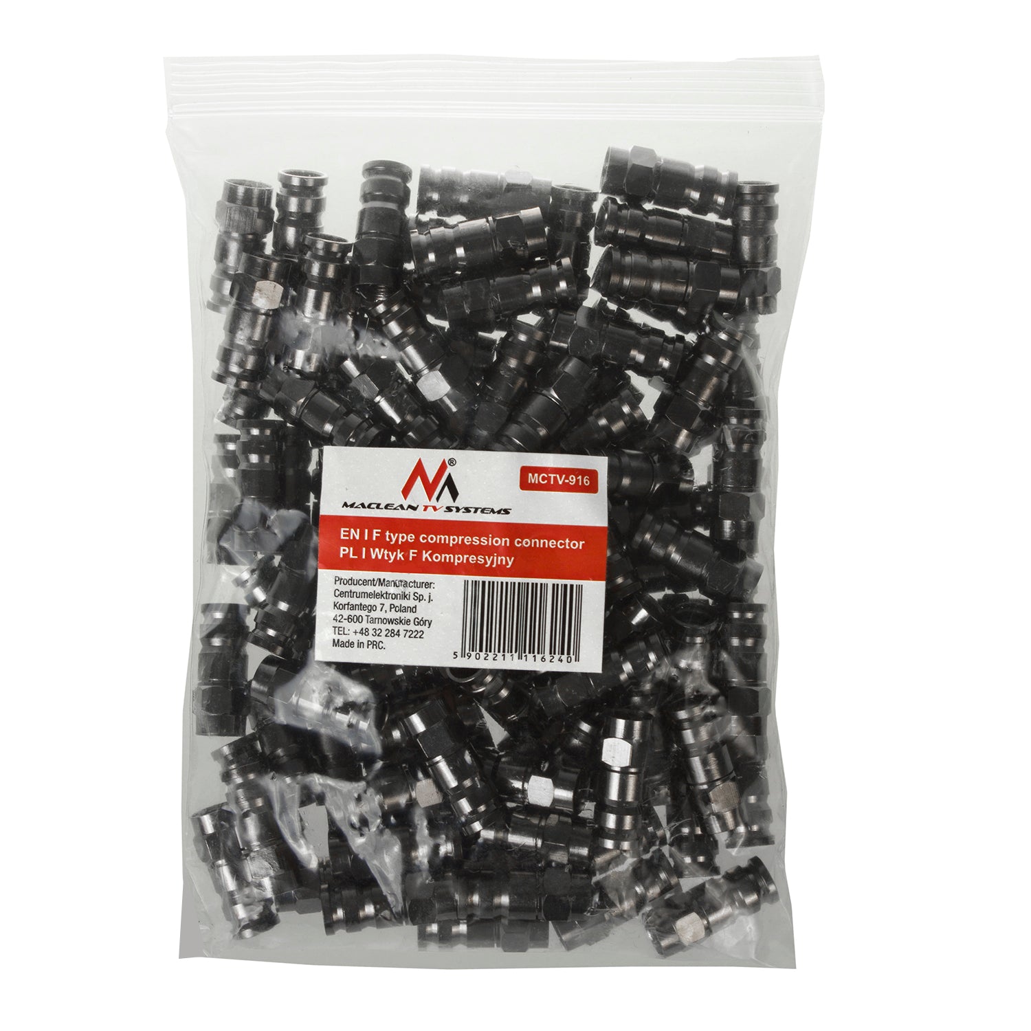 100x Maclean, conector de compresie F, RG-6, profesional, nichel, negru, MCTV-916