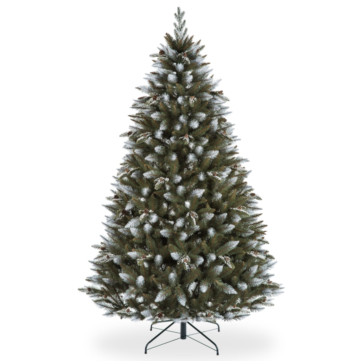 Bradul este realizat din folie PVC de înaltă calitate, de culoare verde care reproduce culoarea naturală a copacului. În plus, este decorat cu crenguțe de polietilenă. Ramurile pomului de Crăciun sunt formate din ace subțiri, mai degrabă rigide, cu o lungime de aproximativ 2 cm. Acele sunt dispuse foarte aproape unele de altele, astfel încât pomul este dens. Toate crengile din PVC, tăiate într-un con natural, sunt fixate permanent pe o sârmă dublă de oțel, care se desface cu ușurință și vă permite să modelați bradul de Crăciun așa cum doriți. Poate susține chiar și decorațiuni grele. Întregul copac se află pe un suport stabil.
