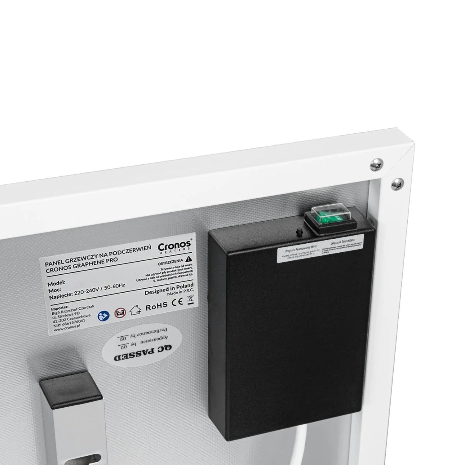 Răcitorul cu infraroșu Cronos Graphene PRO este echipat cu o lungime practică a cablului de 1,5 metri, care oferă confort la instalarea dispozitivului în diverse locații.