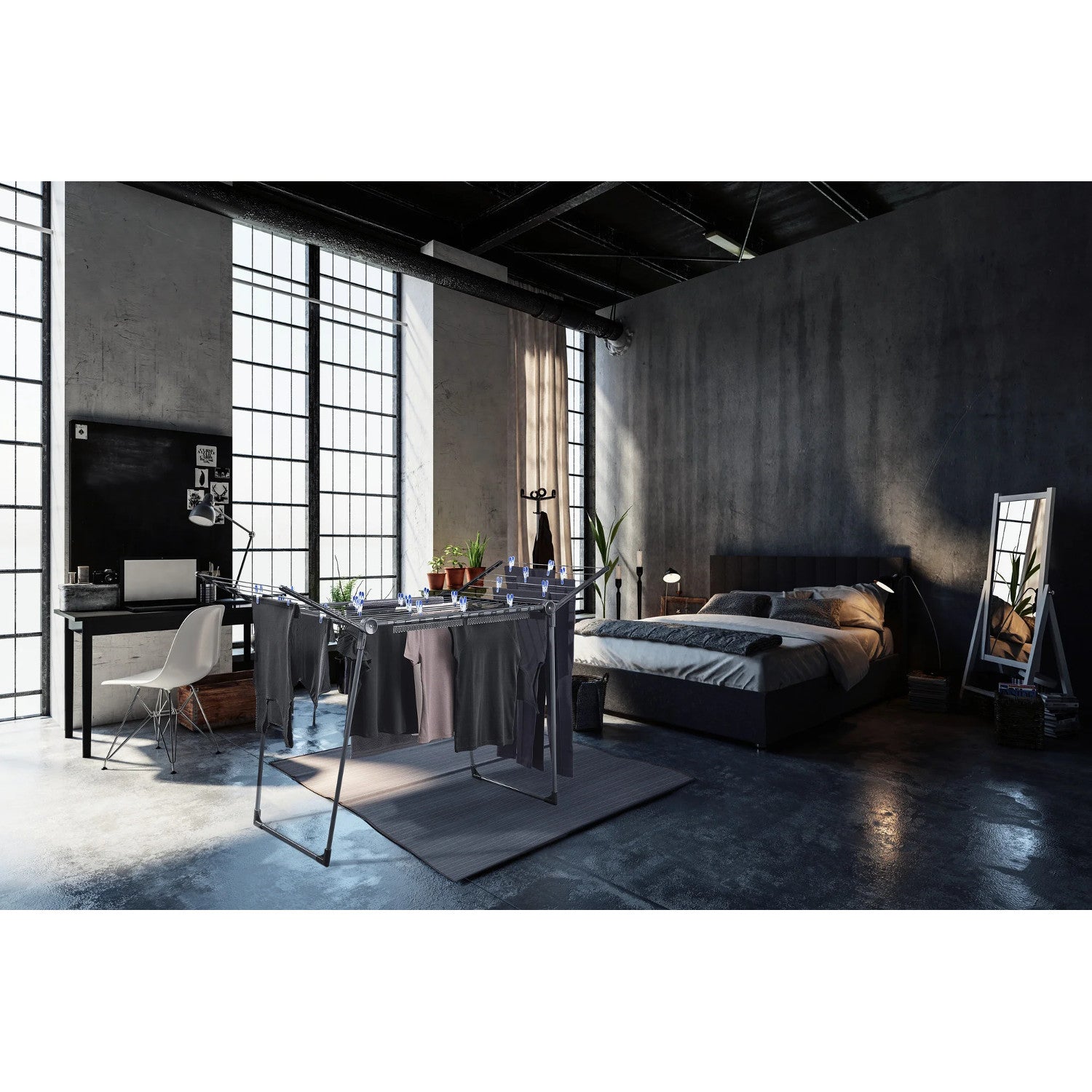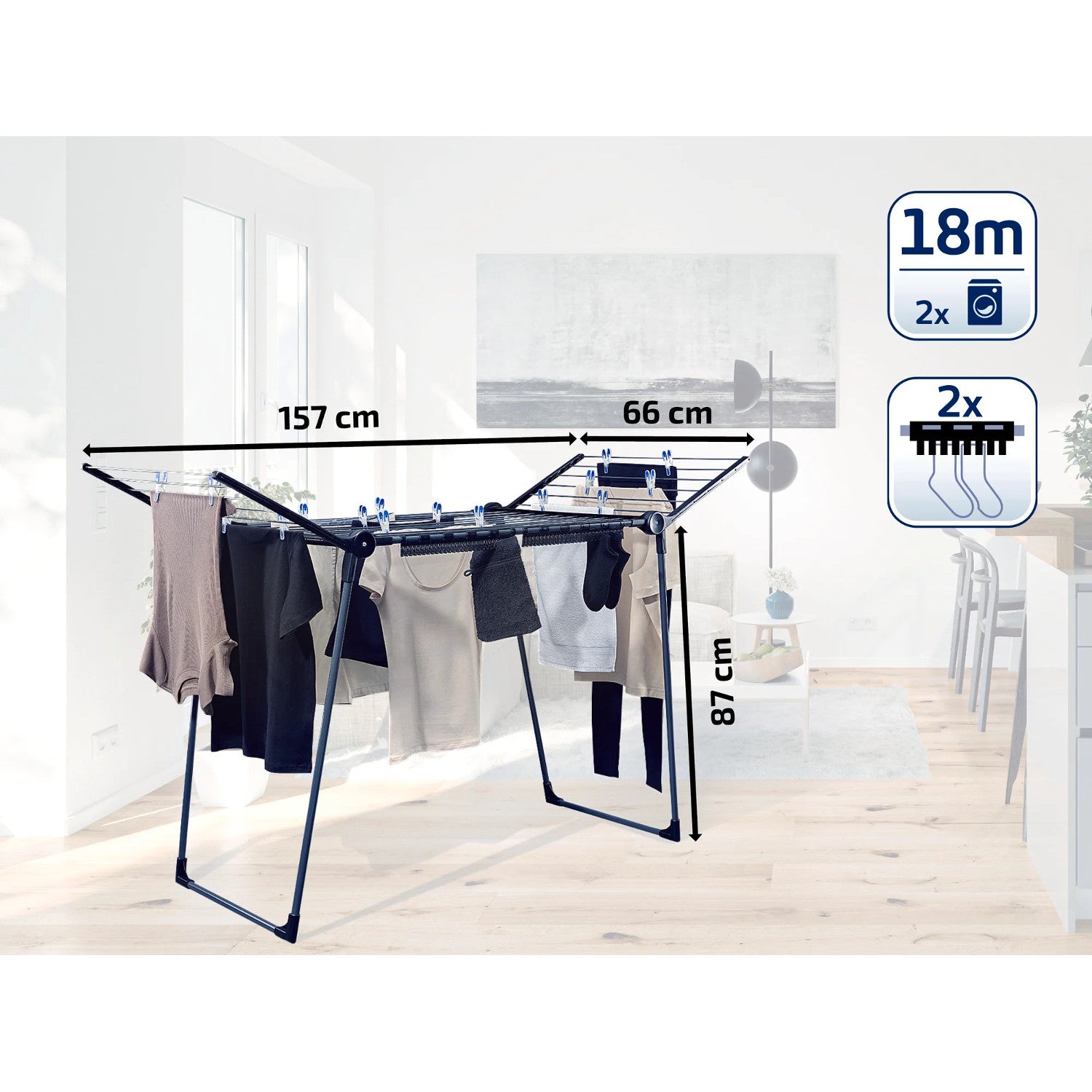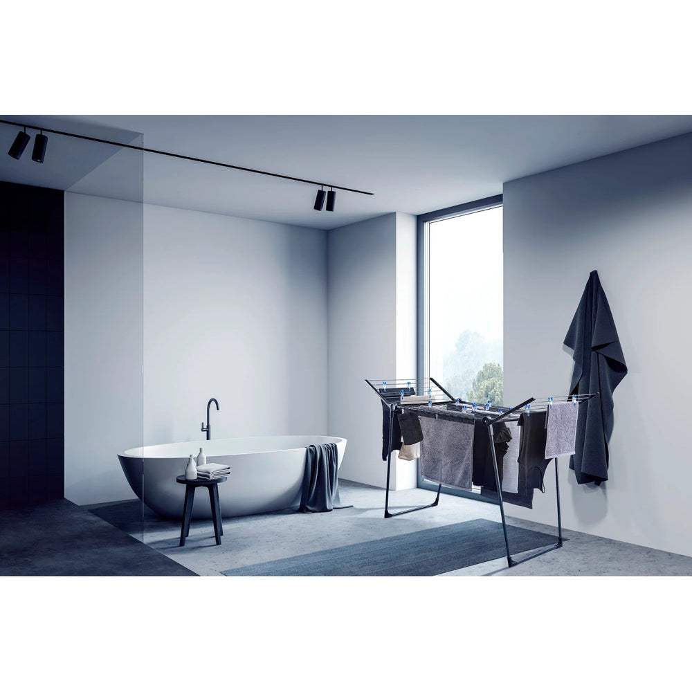 Leifheit Pegasus 180 Solid Black Uscător de rufe, lungime linie 18 m, picioare paralele stabile, rezistent la intemperii, 2 cleme pentru rufe, 81589