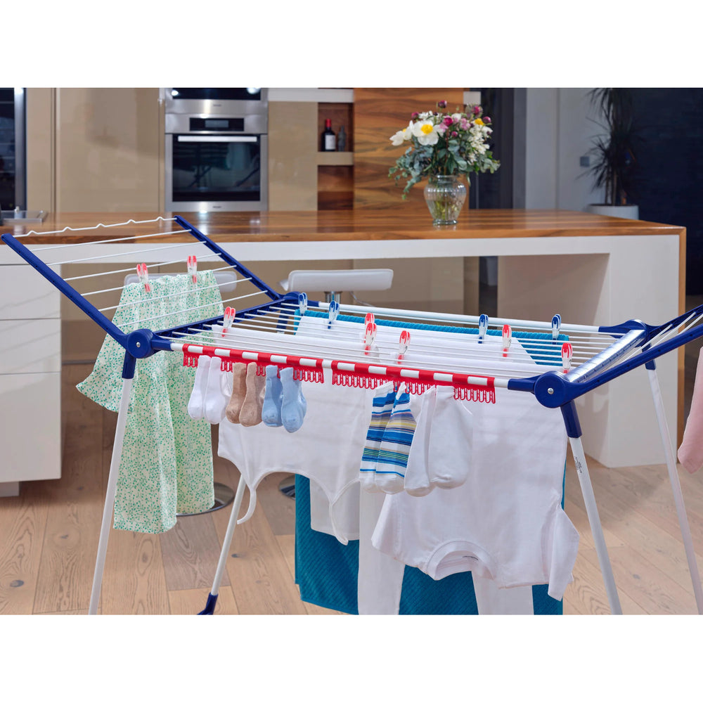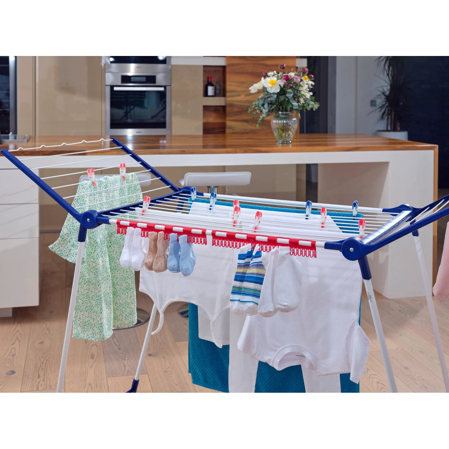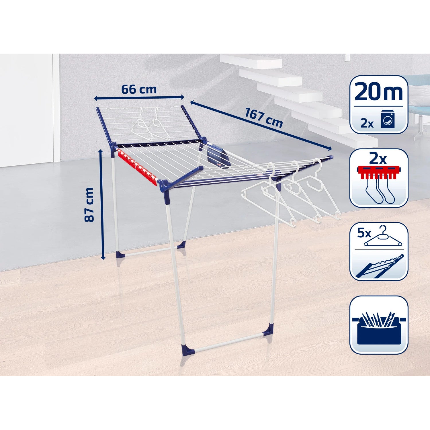Leifheit Pegasus 200 Solid Comfort Uscător de rufe, lungime linie 20 m, picioare antiderapante, rezistent la intemperii, 2 cleme pentru rufe, 81516