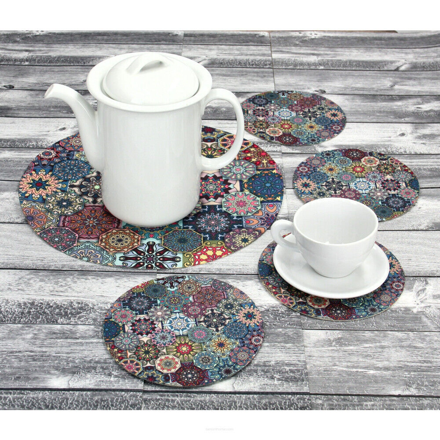 Set covoraș de masă rotund din pâslă 1 + 4 - VALENCIA